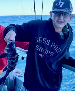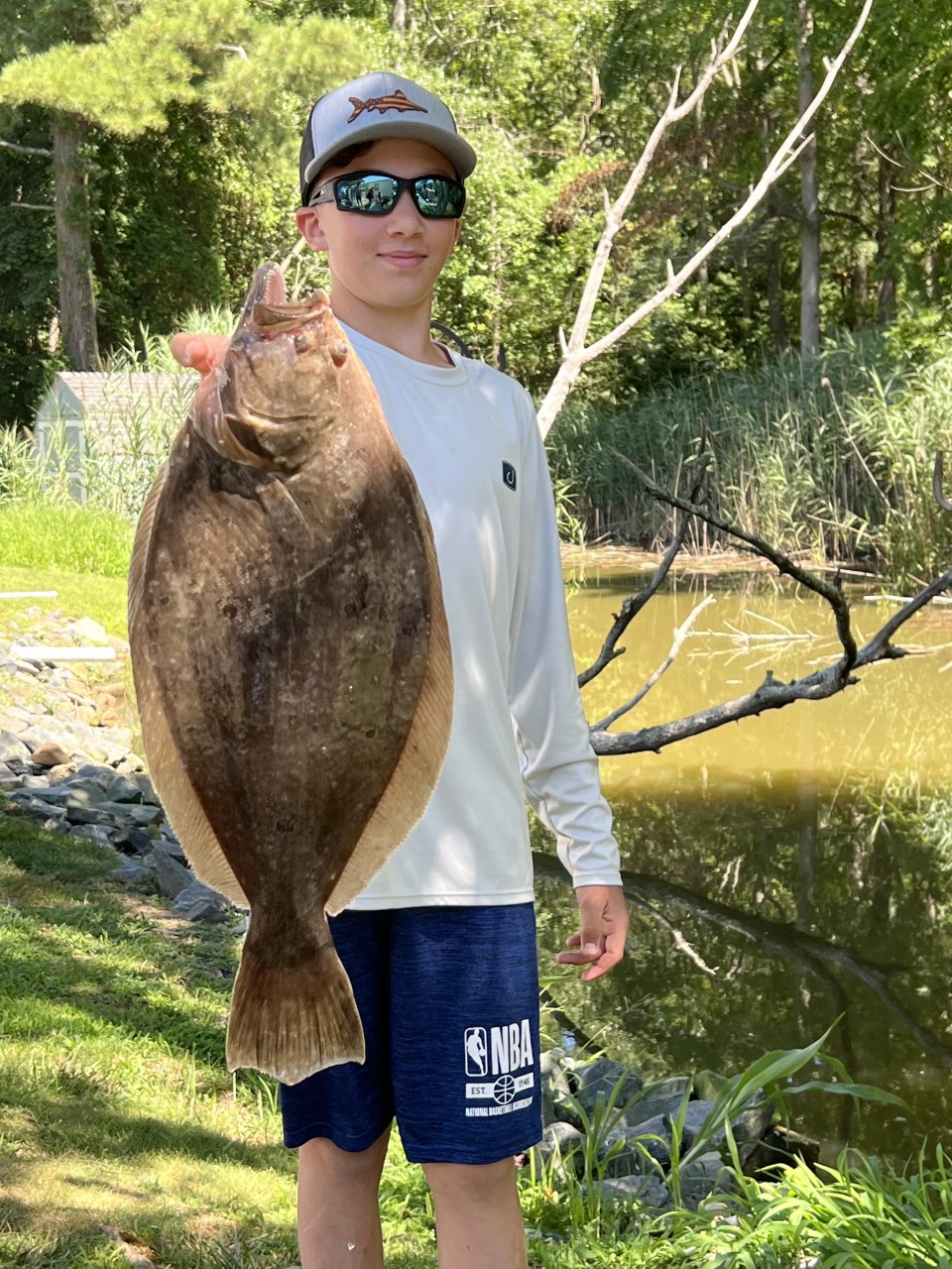 Braden Fisher threw his own cast net, caught his own mullet and then used them to land this nice 23″, 4 pound flounder. Braden was fishing the east channel on the OCD out of the West OC based Albatross Fishing Fleet captained by Bruce Bostic.