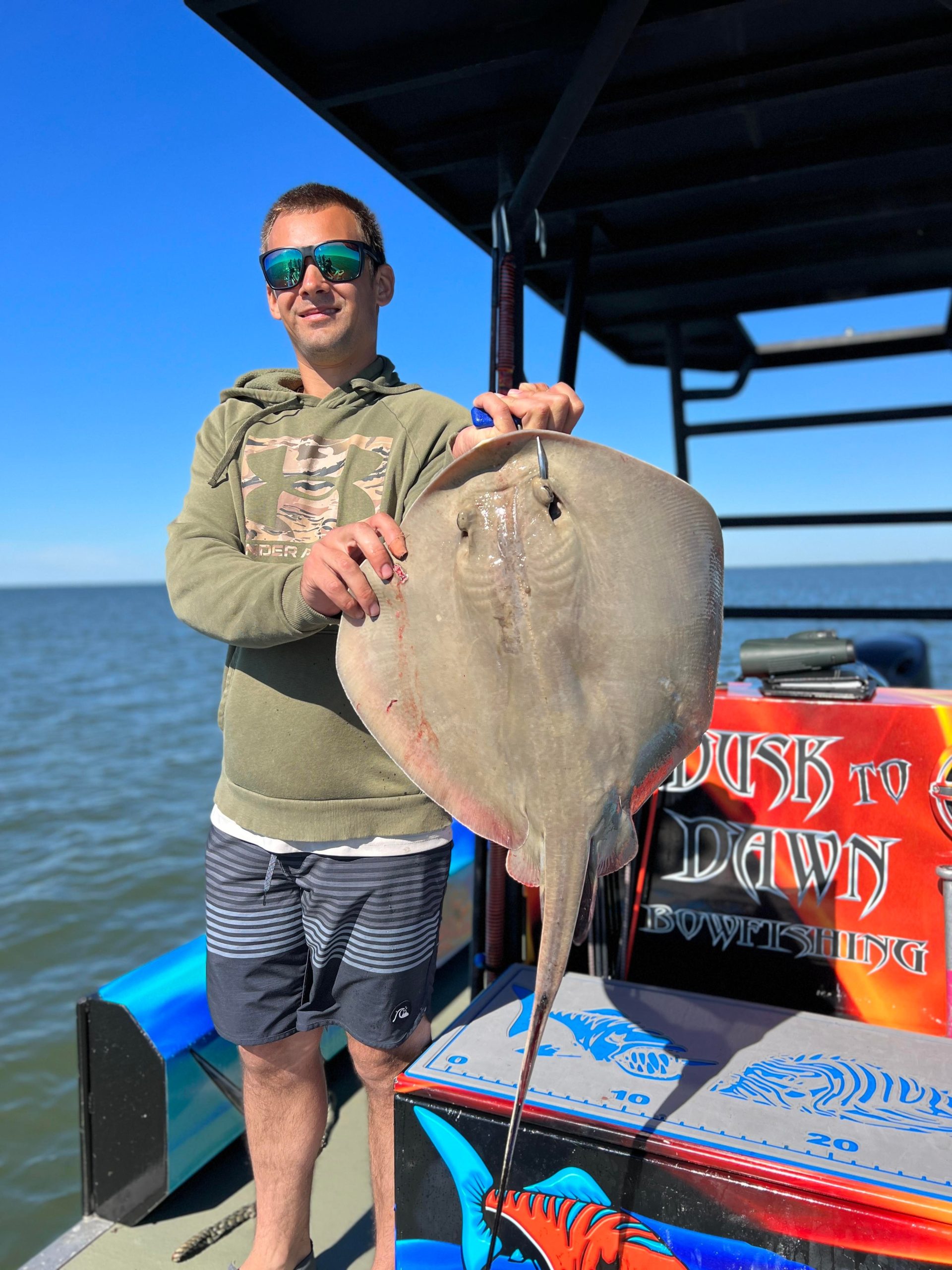 Captain Marc Spagnola of Dusk to Dawn Bowfishing had another nice day on the water putting his shooters on some good ray action.