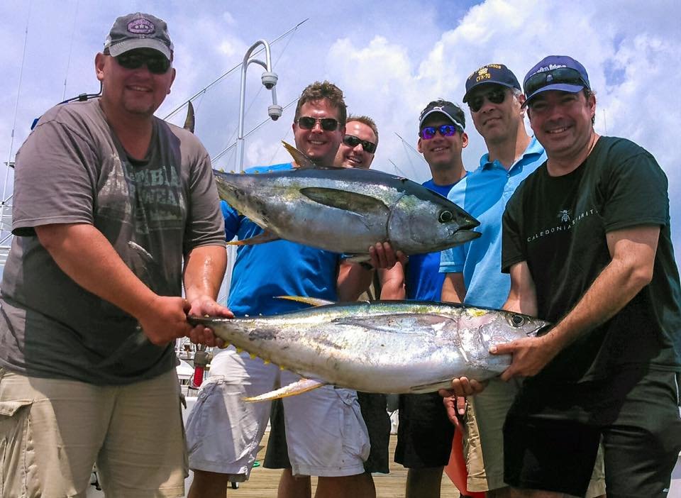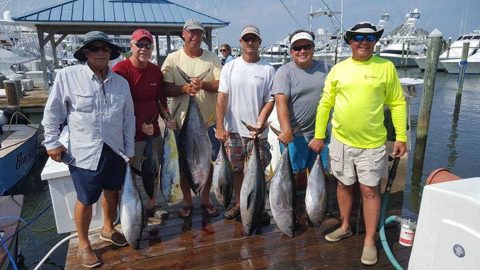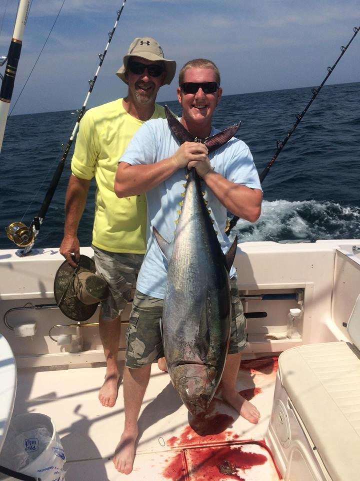 The crew on the Playin’ Catch with Captain Bob Borys Sr and mate Bob Borys Jr had a decent day today. They started at Massey’s drifting and when nothing was happening there Captain Bob Borys Sr decided on a hunch to head way inside to the twin wrecks and troll for dolphin. The crew ended up with one 71 pound, 51″ bluefin and had two other bluefin hooked up that didn’t stay tight. The crew was first time angler David Stouffer and his dad Tim.