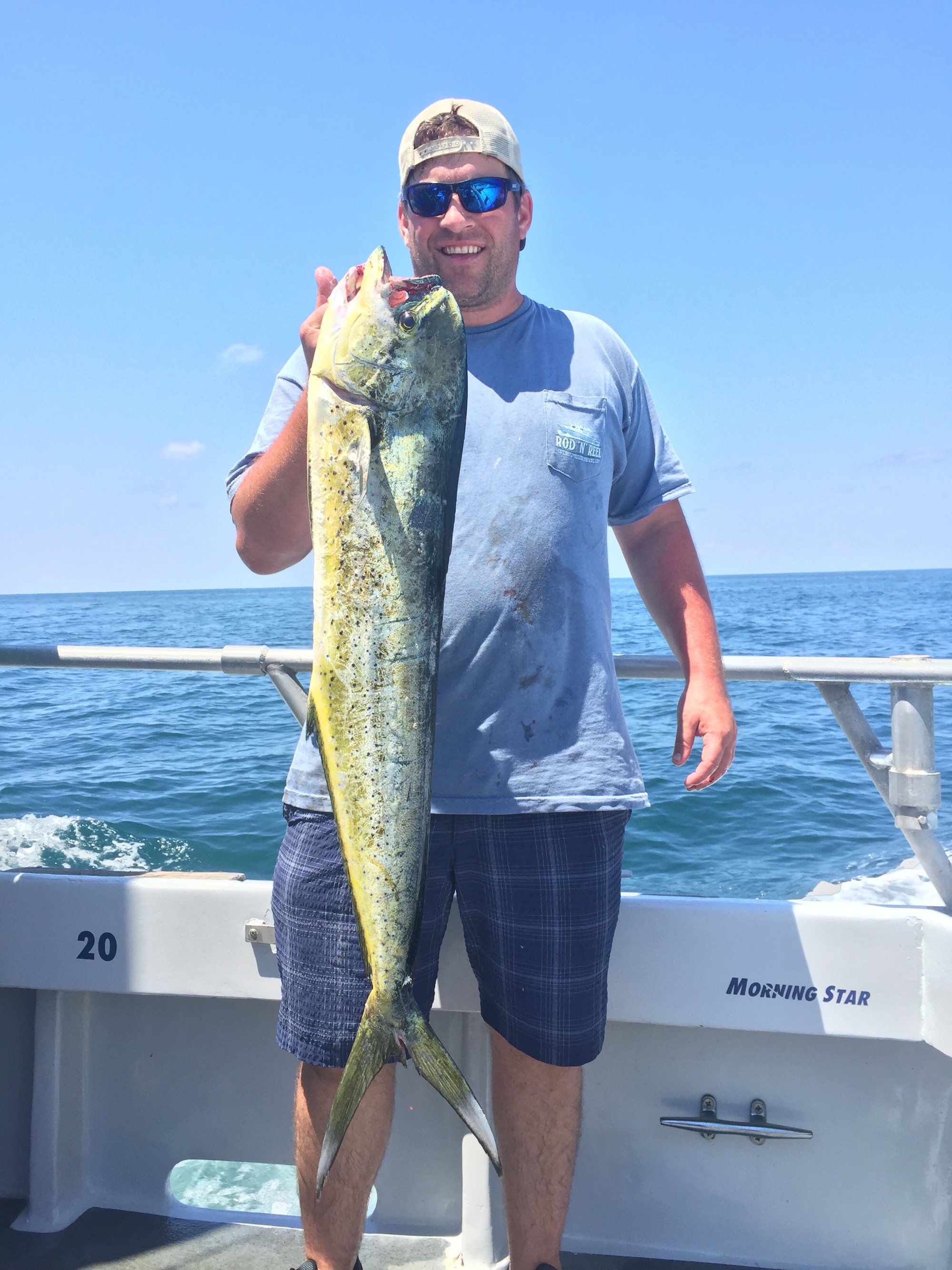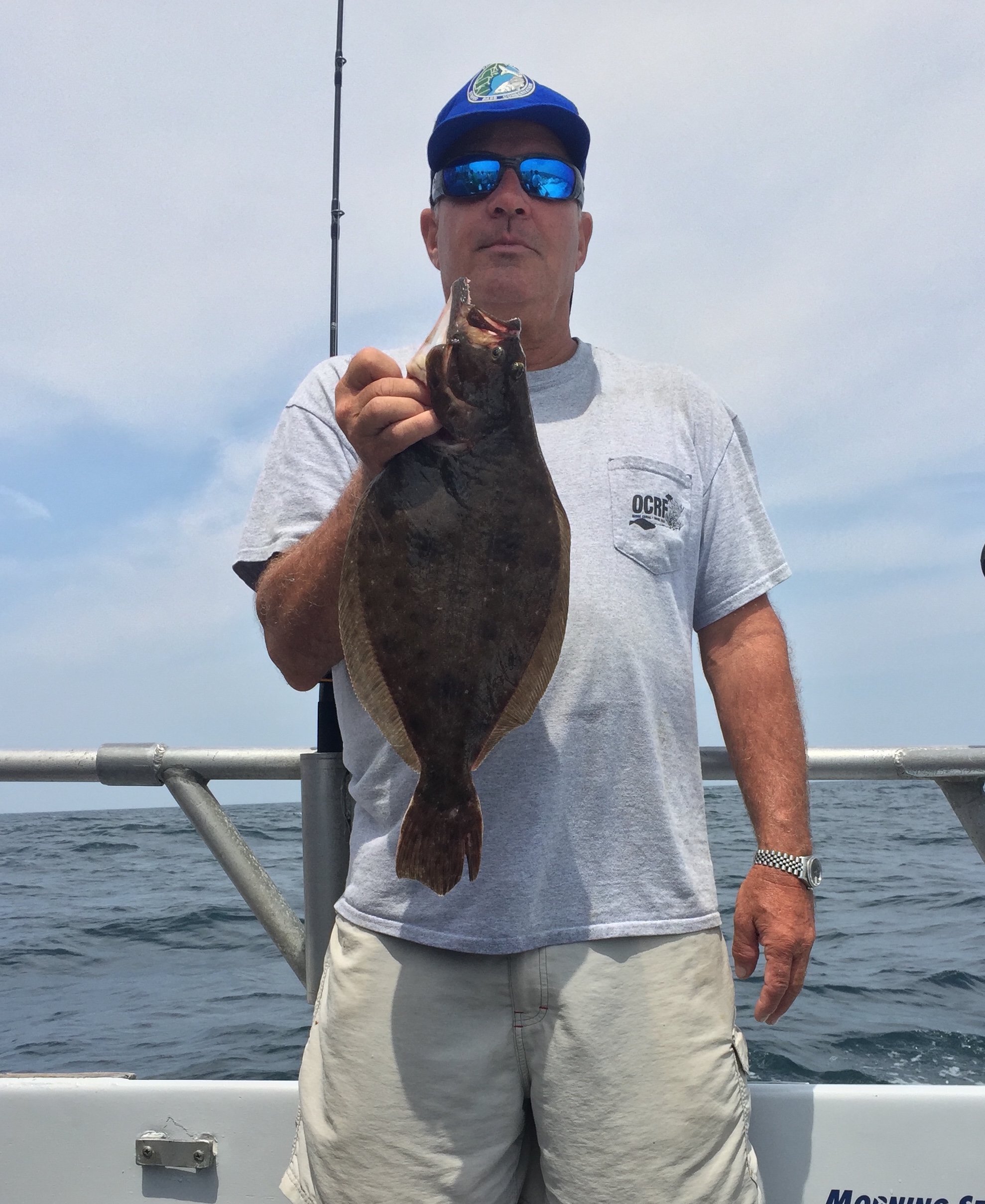 The Morning Star with Captain Monty Hawkins out of the Ocean City Fishing Center has been having some good luck with flounder recently. Morning Star has also had at least one mahi and some sea bass come over the rail too. George Henning shows his doormat 7 pound flounder caught with Captain Monty and mates Wes Pollitt and Dan Iacangelo.
